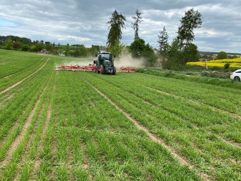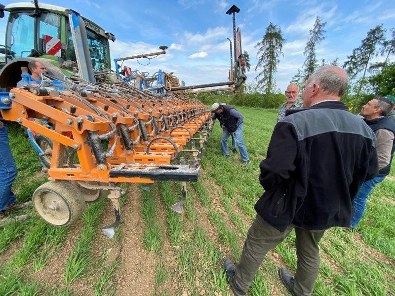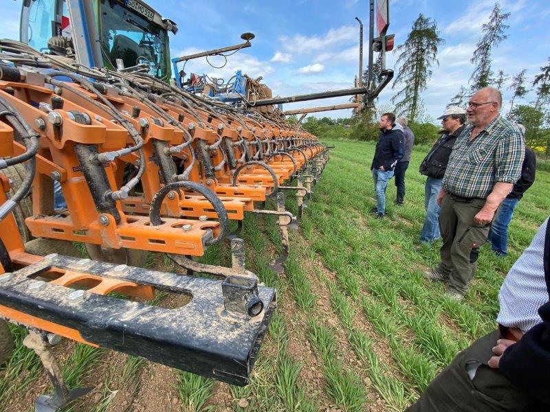 14.05.22 „Einfach nur nicht Spritzen ist nicht!“ Beim Finka Feldtag in Rittmarshausen am 13. Mai 2022 konnten sich die interessierten Besucher ein Bild von den notwendigen Maßnahmen machen. Durch den Verzicht auf Herbizide uns Insektizide erfolgt die Unkrautbekämpfung im Wesentlichen durch mechanische Bearbeitung mit Hacken und Striegel. Durch einen auf 25 cm erhöhten Reihenabstand ist der Unkrautbesatz gut reguliert worden.