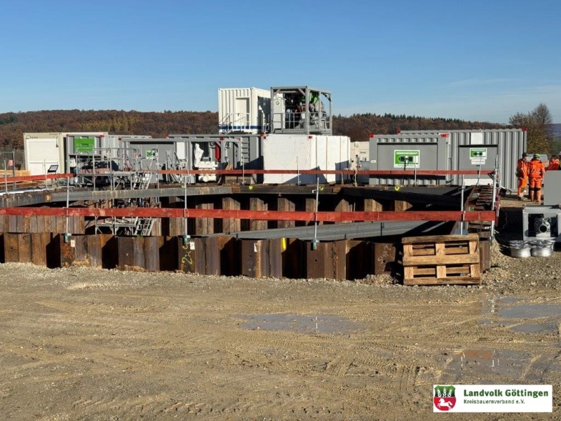 06.11.25 Heute ergab sich die Möglichkeit die Einrichtung der EPP Baustelle beim Suedlink anzuschauen. Im Landkreis Göttingen ist die TransnetBW für Planung und Bau verantwortlich. Eine beeindruckende technische Herausforderung mit wirklich großem Umfang. EEP steht für E-Power Pipe, also ein Bohrverfahren was mit einem Durchmesser von gut 50cm die Löcher für die Leerrohre des SuedLink bohren wird. Dabei sind Bohrlägen von bis zu 2.000 m möglich, täglich sind 200m Bohrfortschritt geplant. Die bekannten HDD Bohrungen konnten bisher bis ca. 500 m Länge eingesetzt werden. Neben dem Bohren selbst hat die Aufbereitungstechnik für die Bohrlösung einen erheblichen Umfang, die Anzahl der Container macht das deutlich.