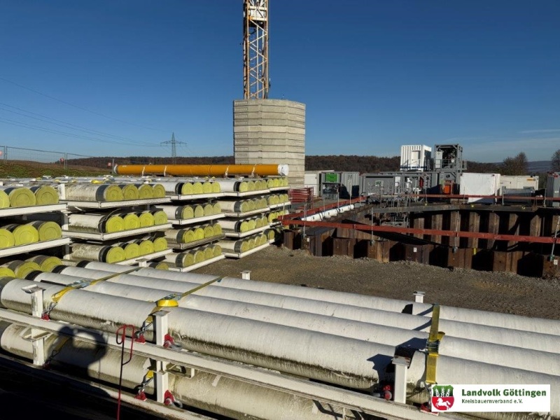 06.11.25 Heute ergab sich die Möglichkeit die Einrichtung der EPP Baustelle beim Suedlink anzuschauen. Im Landkreis Göttingen ist die TransnetBW für Planung und Bau verantwortlich. Eine beeindruckende technische Herausforderung mit wirklich großem Umfang. EEP steht für E-Power Pipe, also ein Bohrverfahren was mit einem Durchmesser von gut 50cm die Löcher für die Leerrohre des SuedLink bohren wird. Dabei sind Bohrlägen von bis zu 2.000 m möglich, täglich sind 200m Bohrfortschritt geplant. Die bekannten HDD Bohrungen konnten bisher bis ca. 500 m Länge eingesetzt werden. Neben dem Bohren selbst hat die Aufbereitungstechnik für die Bohrlösung einen erheblichen Umfang, die Anzahl der Container macht das deutlich.