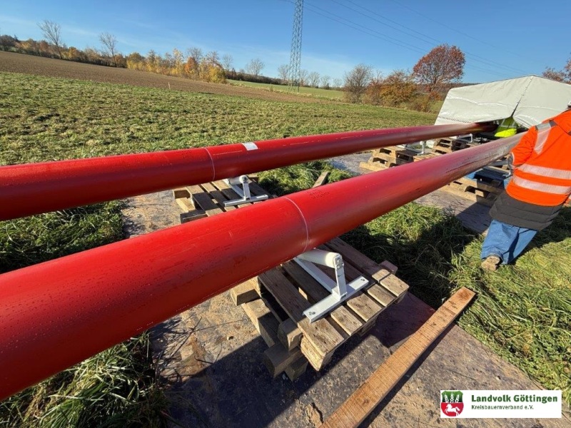 06.11.25 Heute ergab sich die Möglichkeit die Einrichtung der EPP Baustelle beim Suedlink anzuschauen. Im Landkreis Göttingen ist die TransnetBW für Planung und Bau verantwortlich. Eine beeindruckende technische Herausforderung mit wirklich großem Umfang. EEP steht für E-Power Pipe, also ein Bohrverfahren was mit einem Durchmesser von gut 50cm die Löcher für die Leerrohre des SuedLink bohren wird. Dabei sind Bohrlägen von bis zu 2.000 m möglich, täglich sind 200m Bohrfortschritt geplant. Die bekannten HDD Bohrungen konnten bisher bis ca. 500 m Länge eingesetzt werden. Neben dem Bohren selbst hat die Aufbereitungstechnik für die Bohrlösung einen erheblichen Umfang, die Anzahl der Container macht das deutlich.